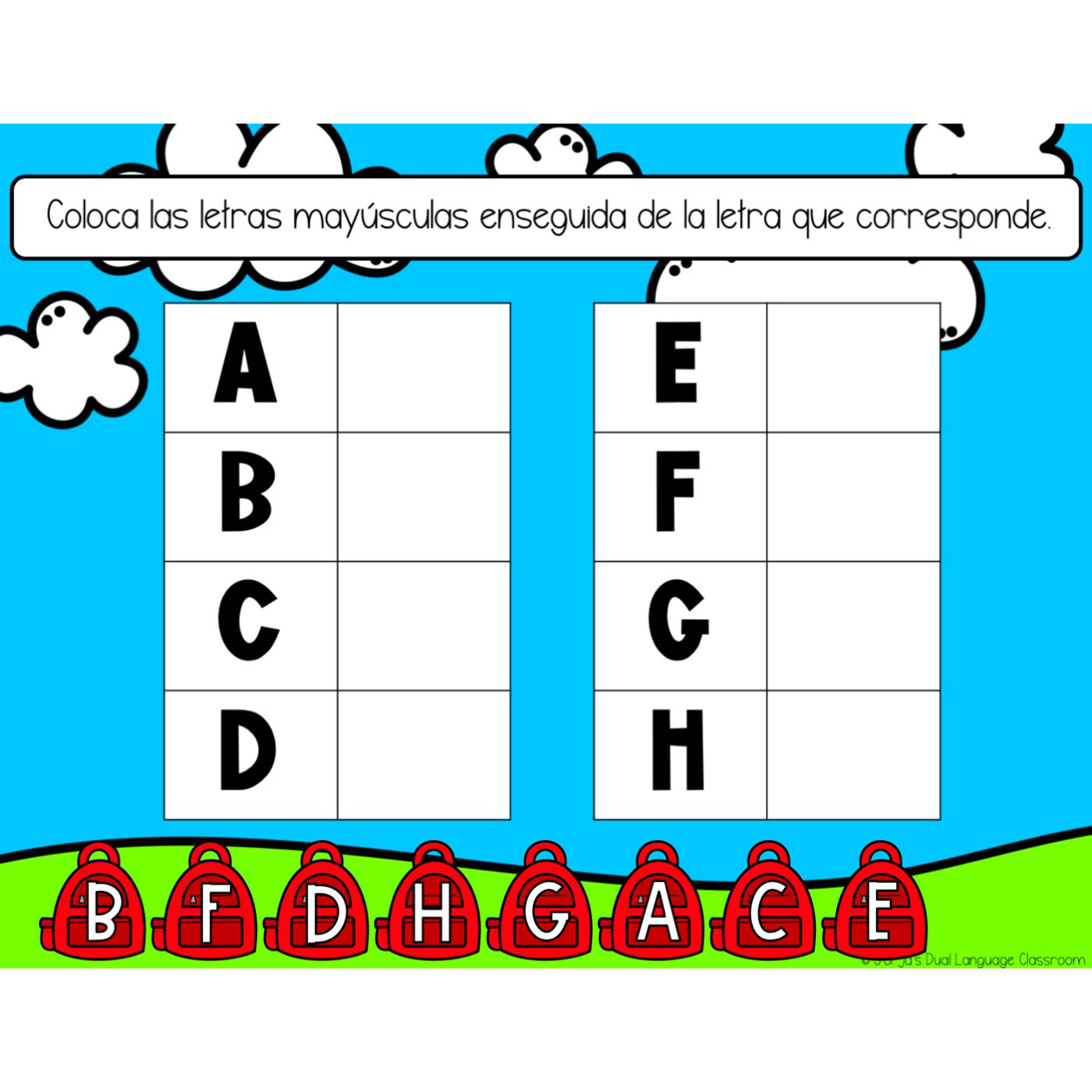 - Abecedario (A-Z): Relacionar mayúsculas y minúsculas