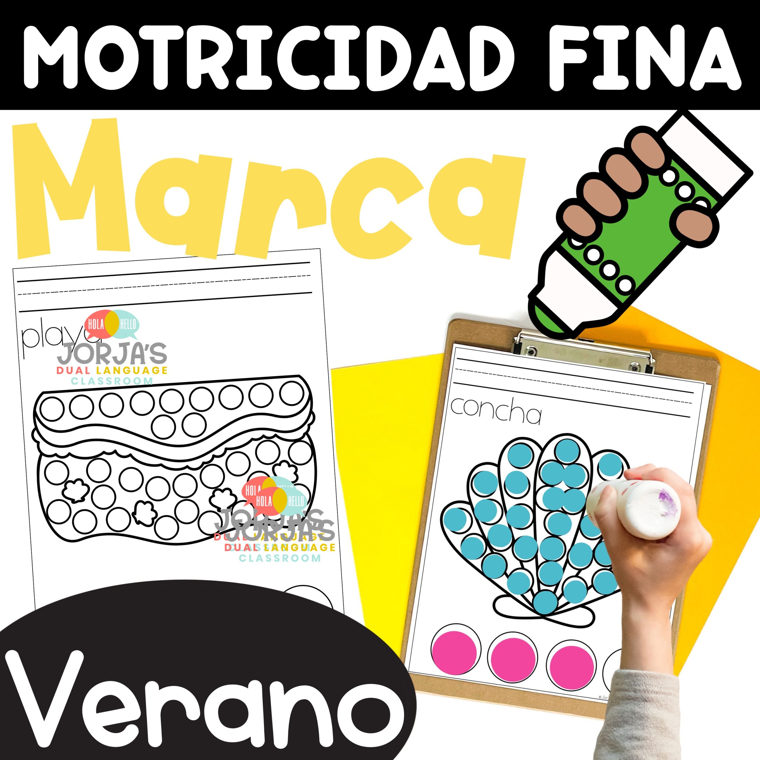 Actividades de Motricidad fina Marca las figuras Verano Summer in Spanish – Esta será sin duda la actividad favorita de motricidad fina de tus estudiantes. Utilizando un marcador de puntos (dauber) podrán decorar la figura y desarrollar motricidad. Tus niños disfrutarán utilizar las bonitas imágenes de verano – Summer in Spanish