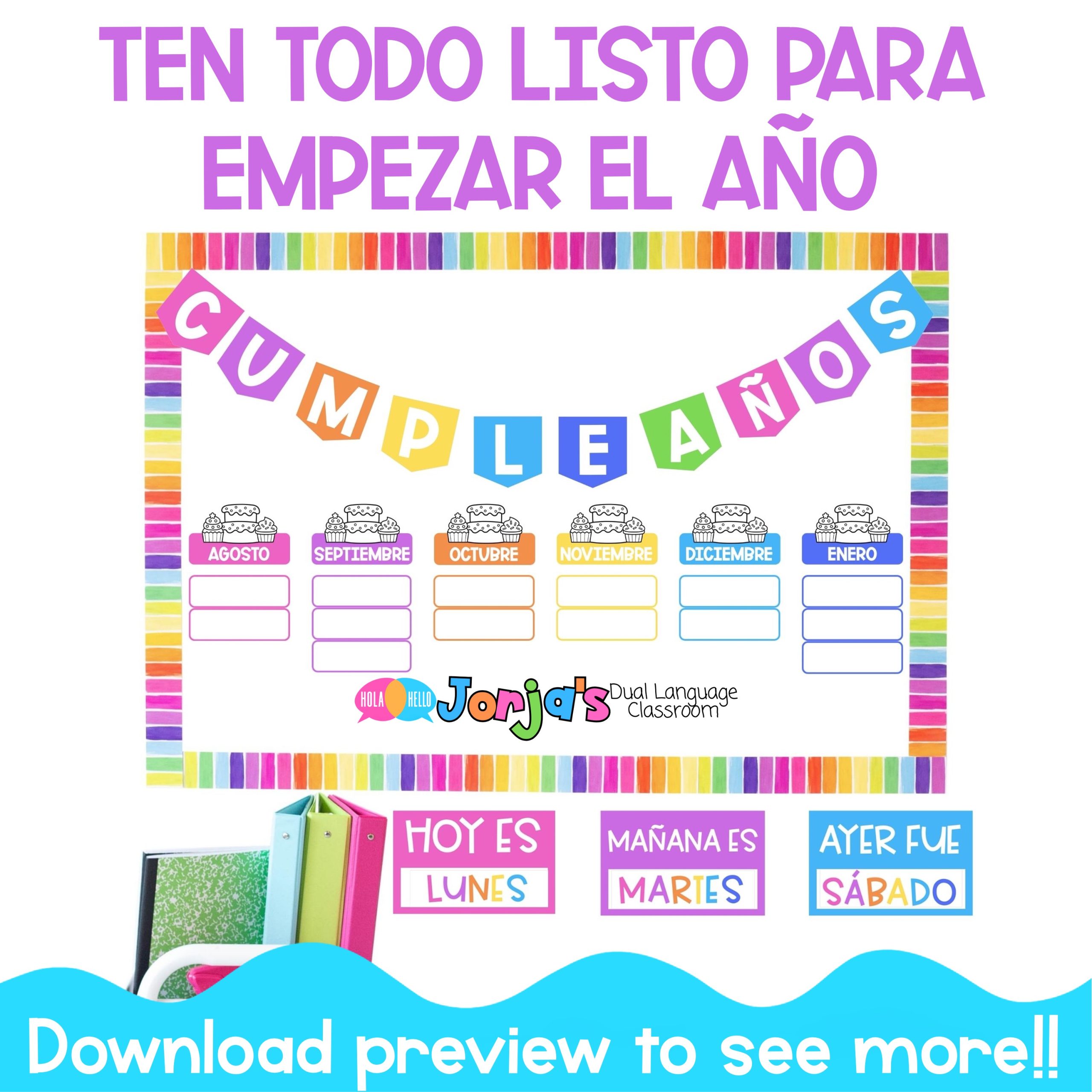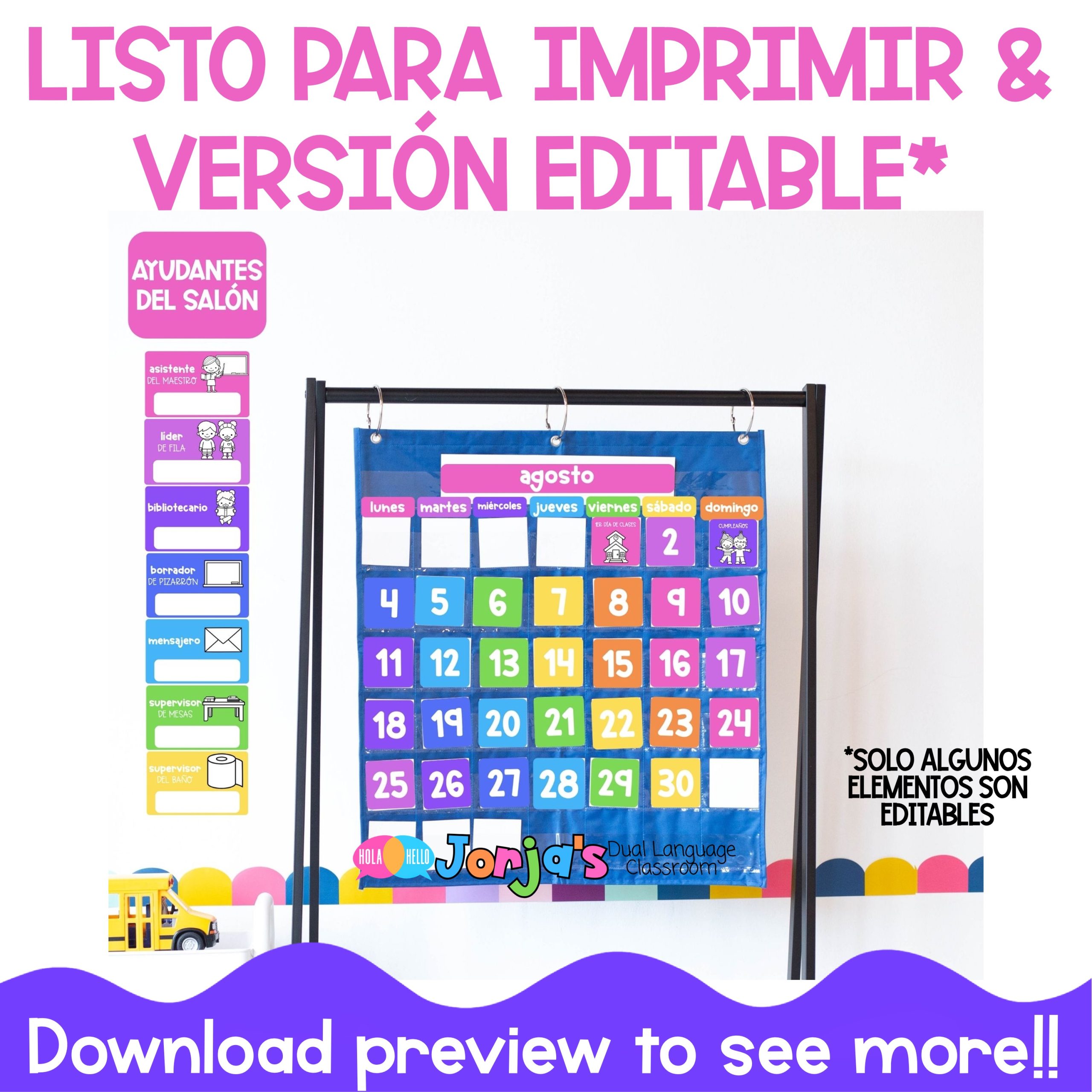 Este recurso fue diseñado pensando en maestros bilingües que quieren un espacio organizado, visual y completamente en español desde el primer día de clases. Cada elemento está listo para imprimir y usar con tus niños, ideal para preescolar, kinder y primeros grados.