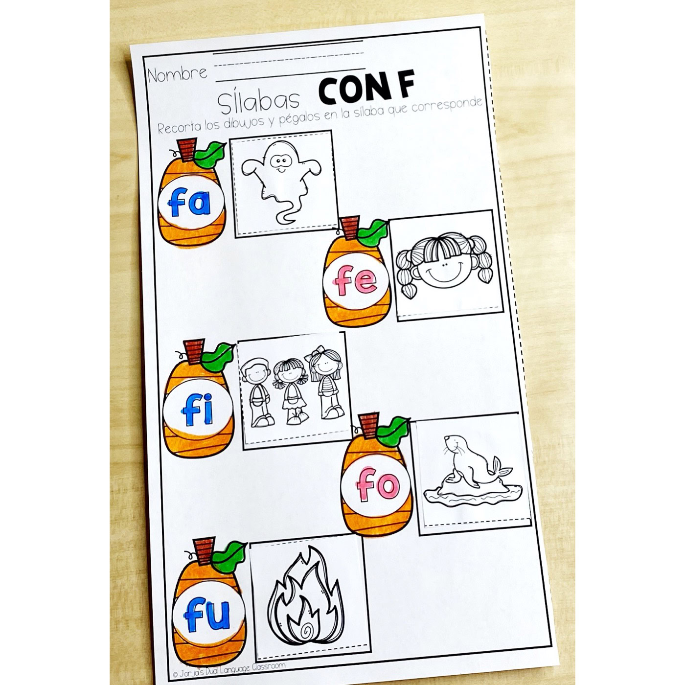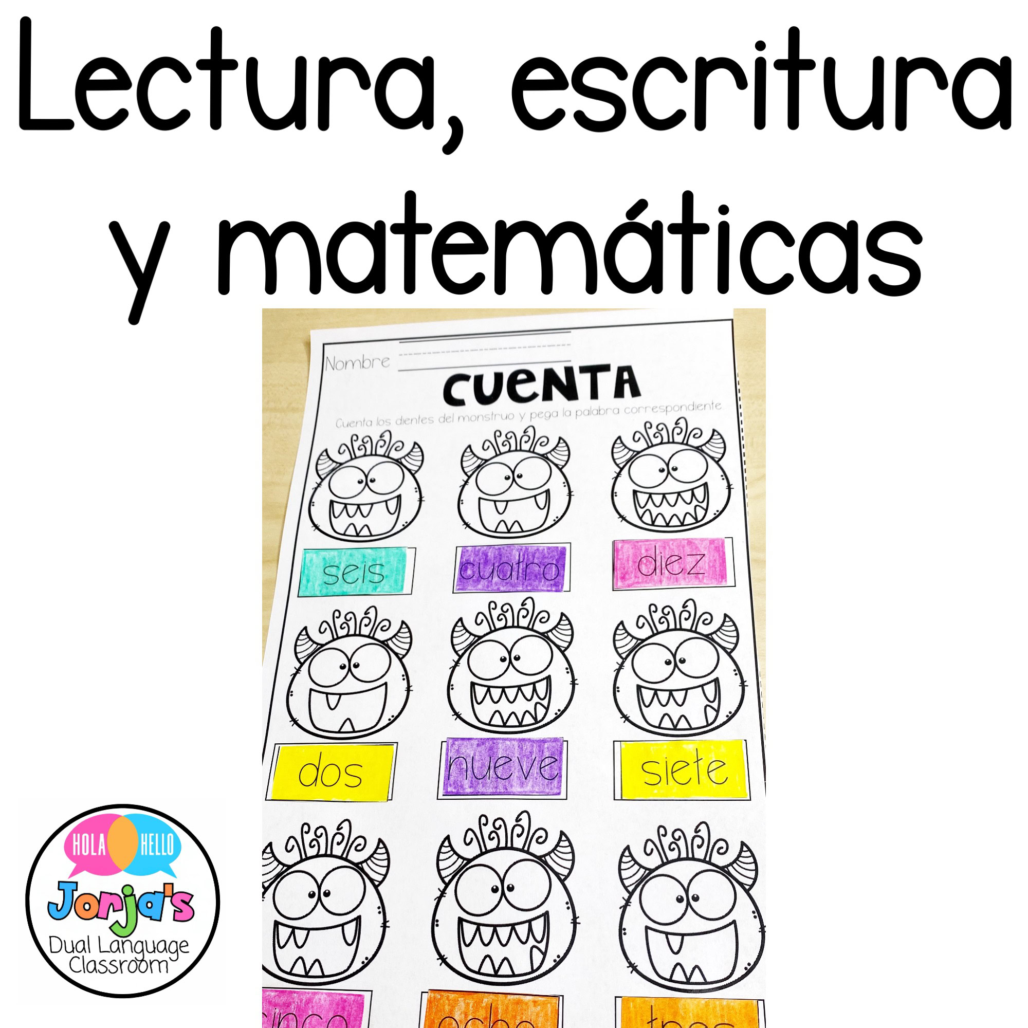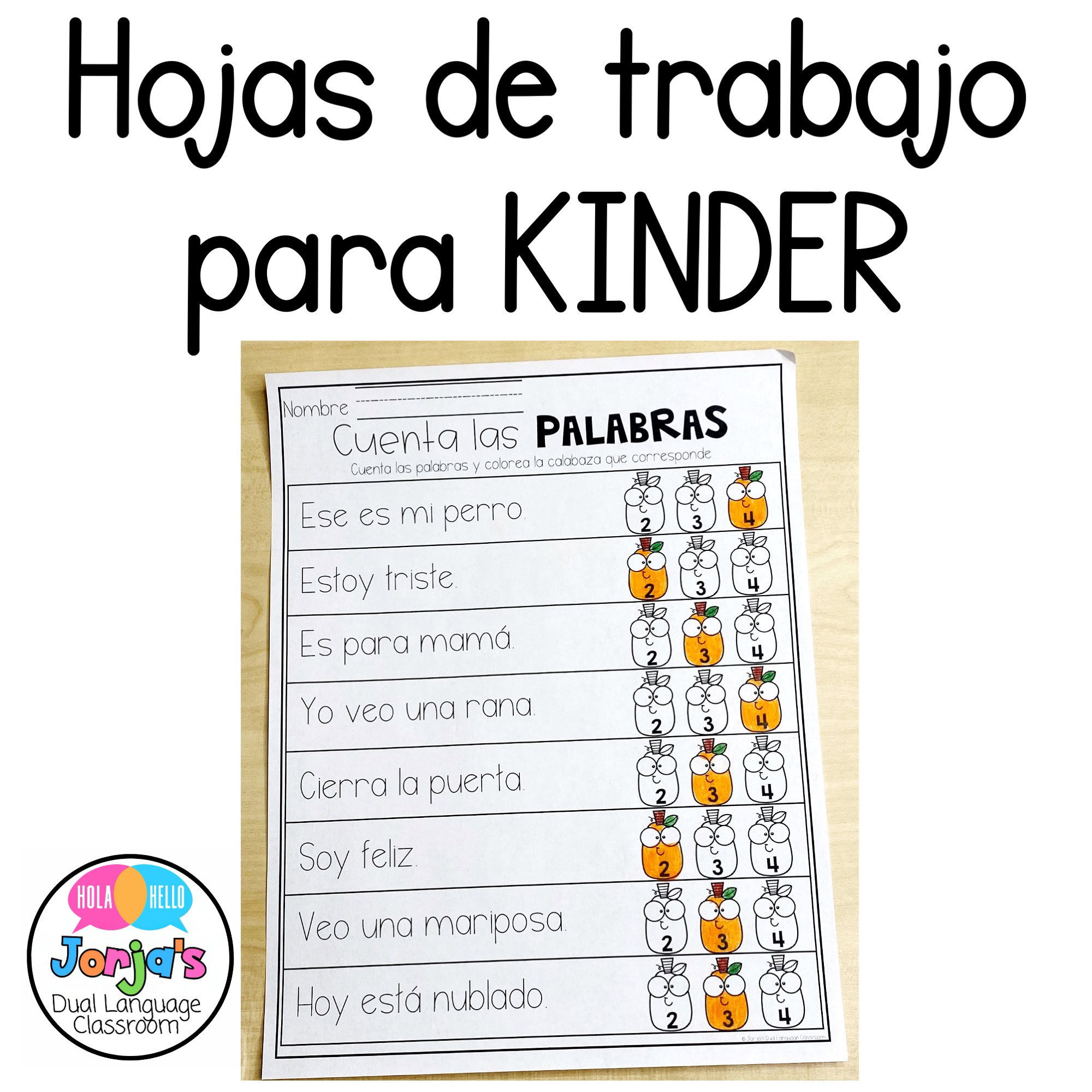 Hojas de trabajo Kinder Lectura matemáticas escritura Halloween in Spanish – Estas hojas de trabajo para kinder en español son ideales para el mes de octubre y te ayudarán a repasar de manera divertida conceptos clave de lectura, escritura y matemáticas en español. Con actividades que incluyen el abecedario, sílabas, rimas, palabras de uso frecuente, conteo, sumas y restas, tus alumnos tendrán práctica diaria lista para usar sin preparación adicional. Este recurso funciona excelente en programas bilingües, dual language o Spanish immersion, y también para quienes buscan kindergarten worksheets in Spanish, Spanish literacy and math activities for October, hojas imprimibles en español para kinder.