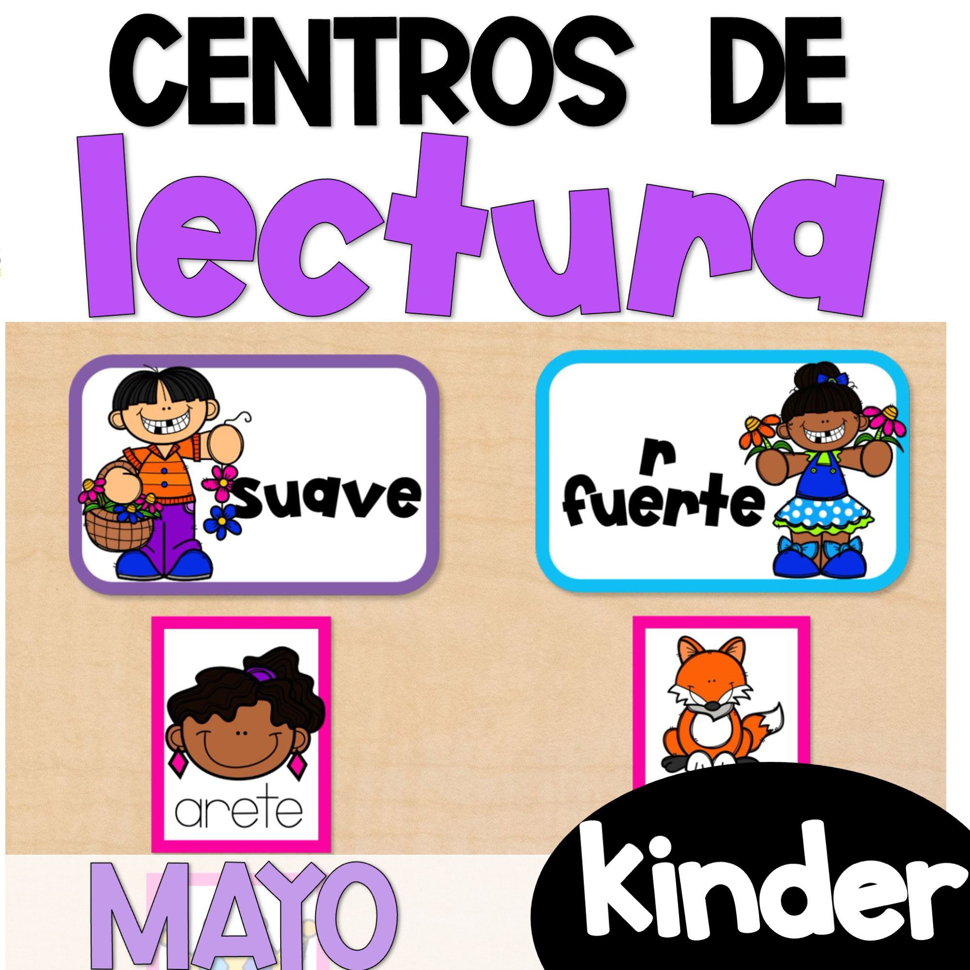 Trabaja con estos centros de lectura para kinder (Kindergarten Literacy Centers in Spanish for May) palabras de uso frecuente, sílabas en español, elementos del cuento, palabras con rr y r, palabras con h, sílabas con o, sílabas con u y conceptos de escritura.