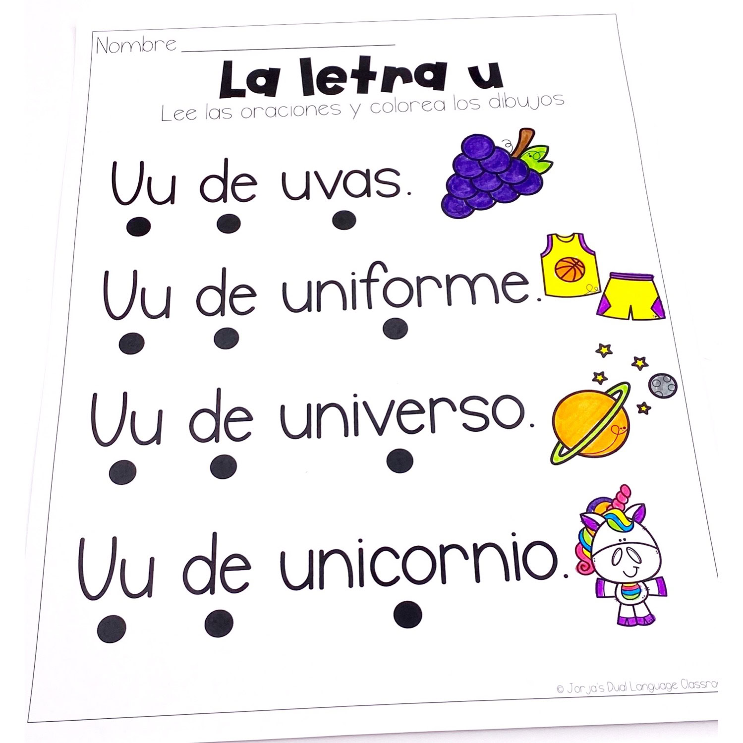 Letra u Letter U Spanish Las vocales en español Vowels in Spanish Actividades – Las vocales son la base de aprender a leer en español. Este paquete con la letra Uu en español le dará a tus estudiantes una forma divertida de practicarla.