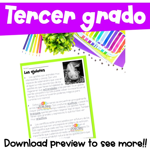 Los ajolotes | Reading comprehension in Spanish | Idea principal tercer grado | Si buscas textos para utilizar en tu salón de tercer grado, este texto divertido te ayudará a desarrollar comprensión con actividades de vocabulario, preguntas de comprensión lectora, y más!