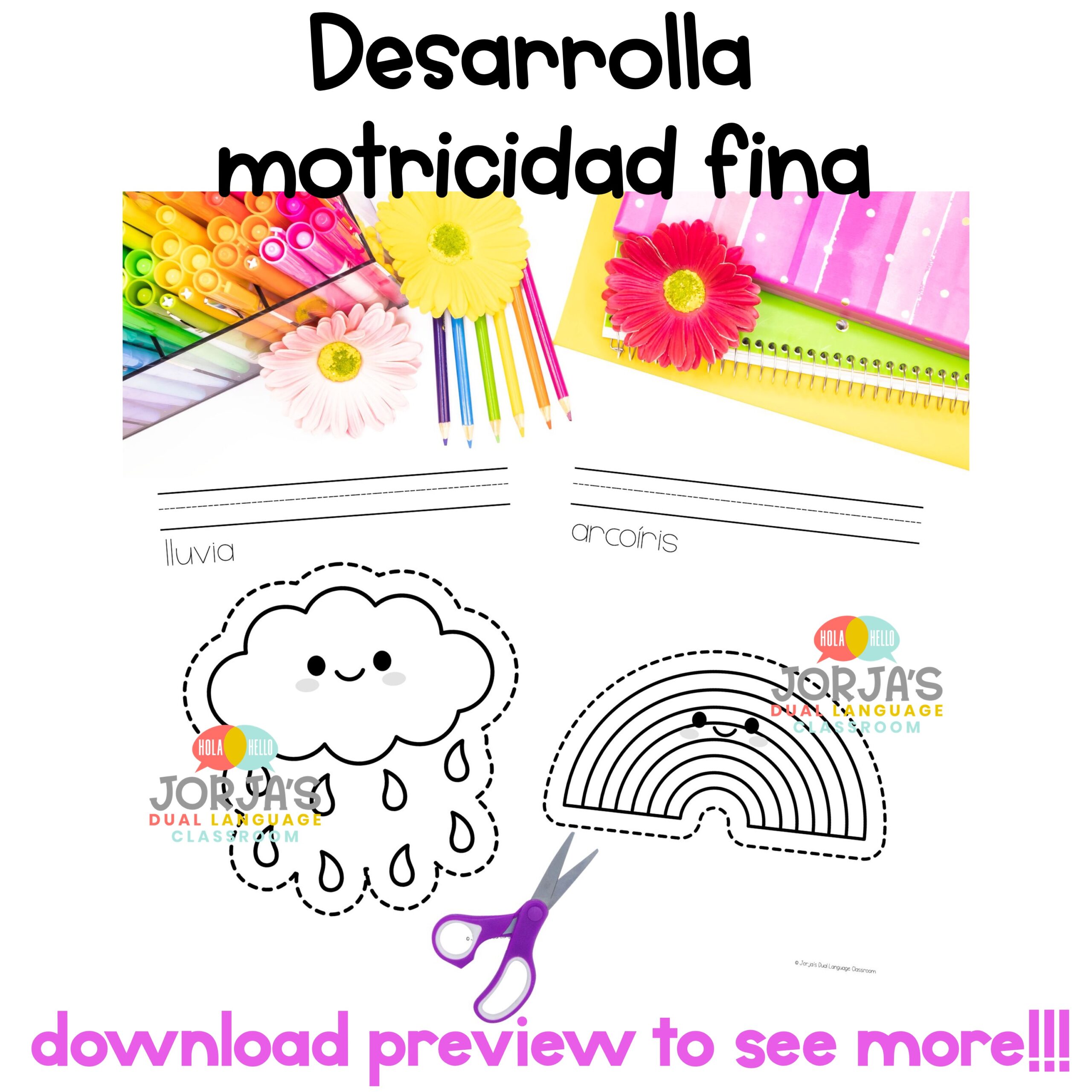 Motricidad fina Práctica de tijeras Scissors practice Primavera in Spanish –