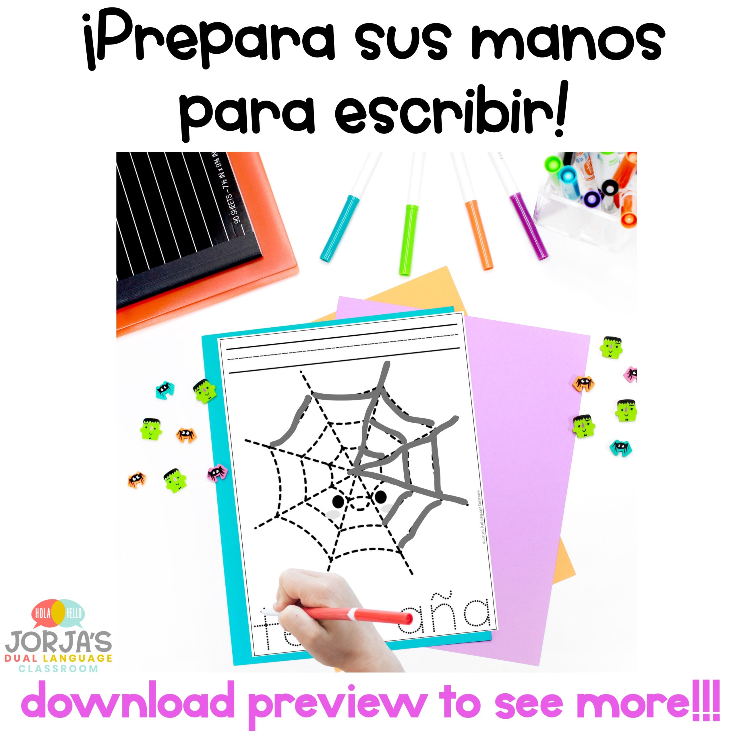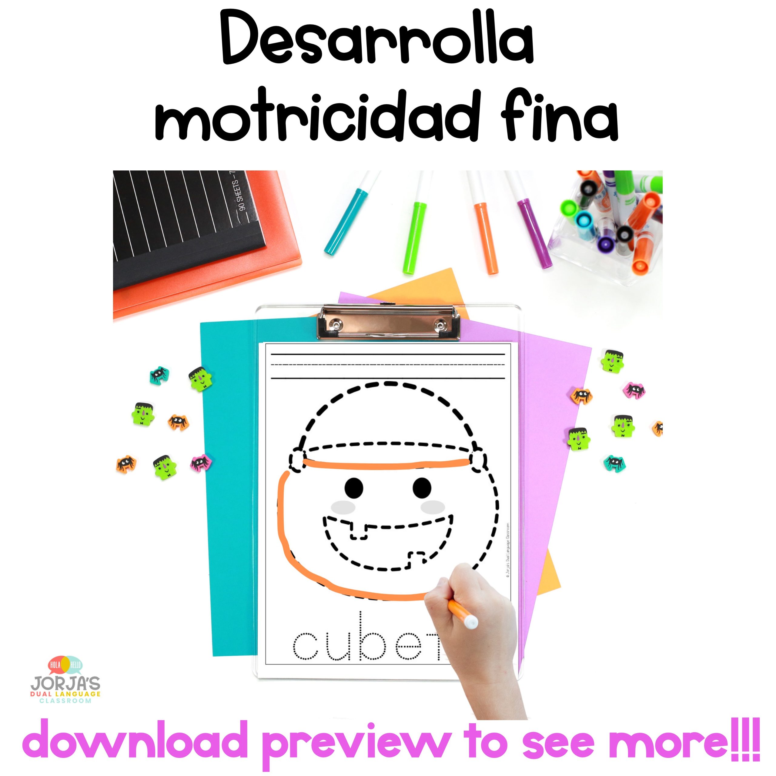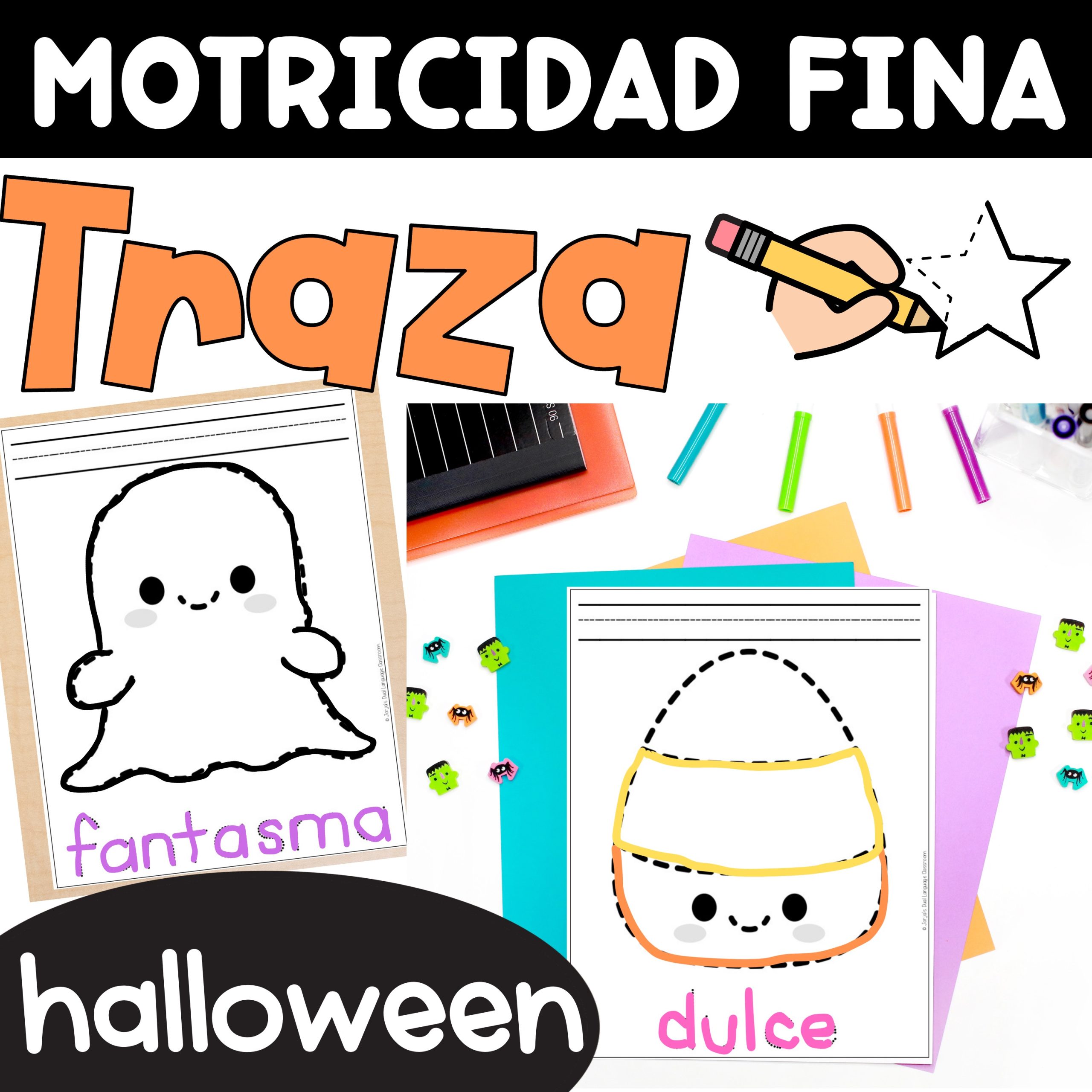Motricidad fina Traza Ejercicios Halloween in Spanish Fine Motor skills – Utiliza estas actividades de motricidad fina para desarrollar manos listas para escribir en tus estudiantes. Esta actividad ayudará a tus niños con el manejo del lápiz. ¡Puedes utilizar estas actividades para hacer del mes de Halloween aún más divertido!