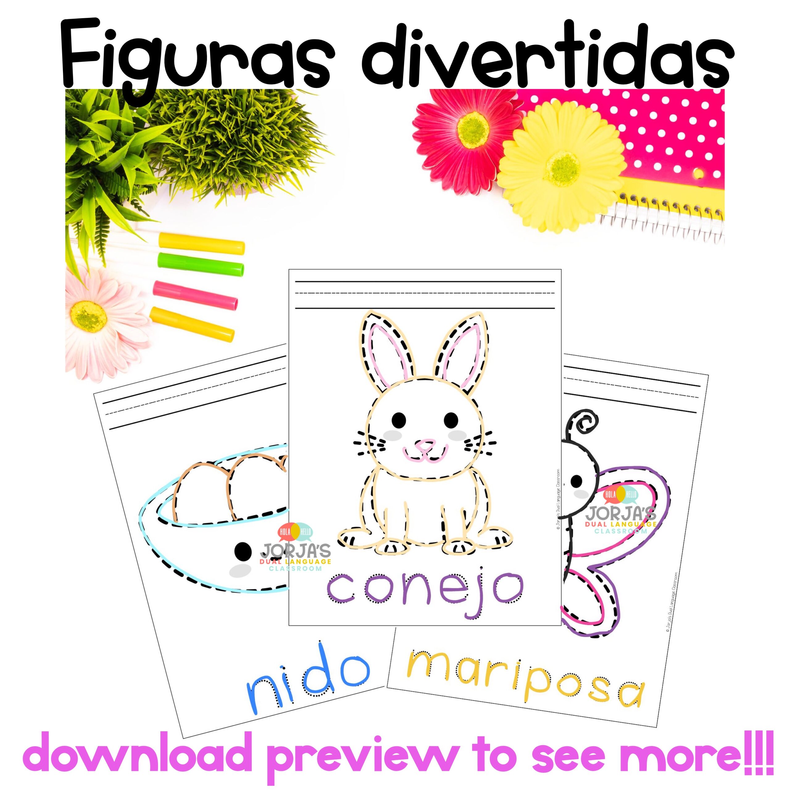 - 25 hojas para trazar figuras con el tema de primavera (Spring in Spanish)