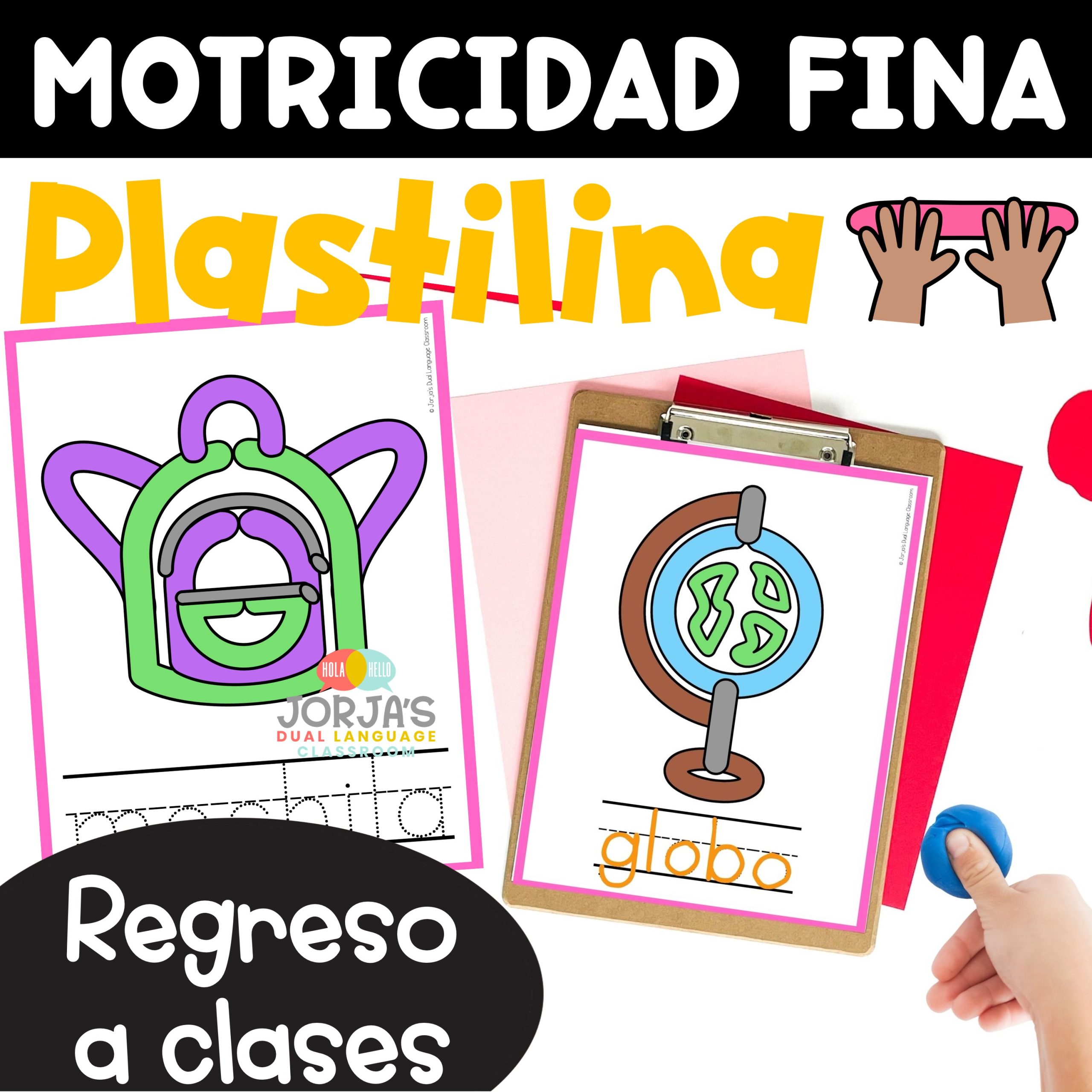 Plastilina Motricidad fina Back to School in Spanish Regreso a clases – Esta actividad de motricidad fina (fine motor skills in Spanish) ayudará a tus estudiantes a ejercitar sus manos con plastilina. Utilizarán el material para construir una variedad de figuras de regreso a clases.