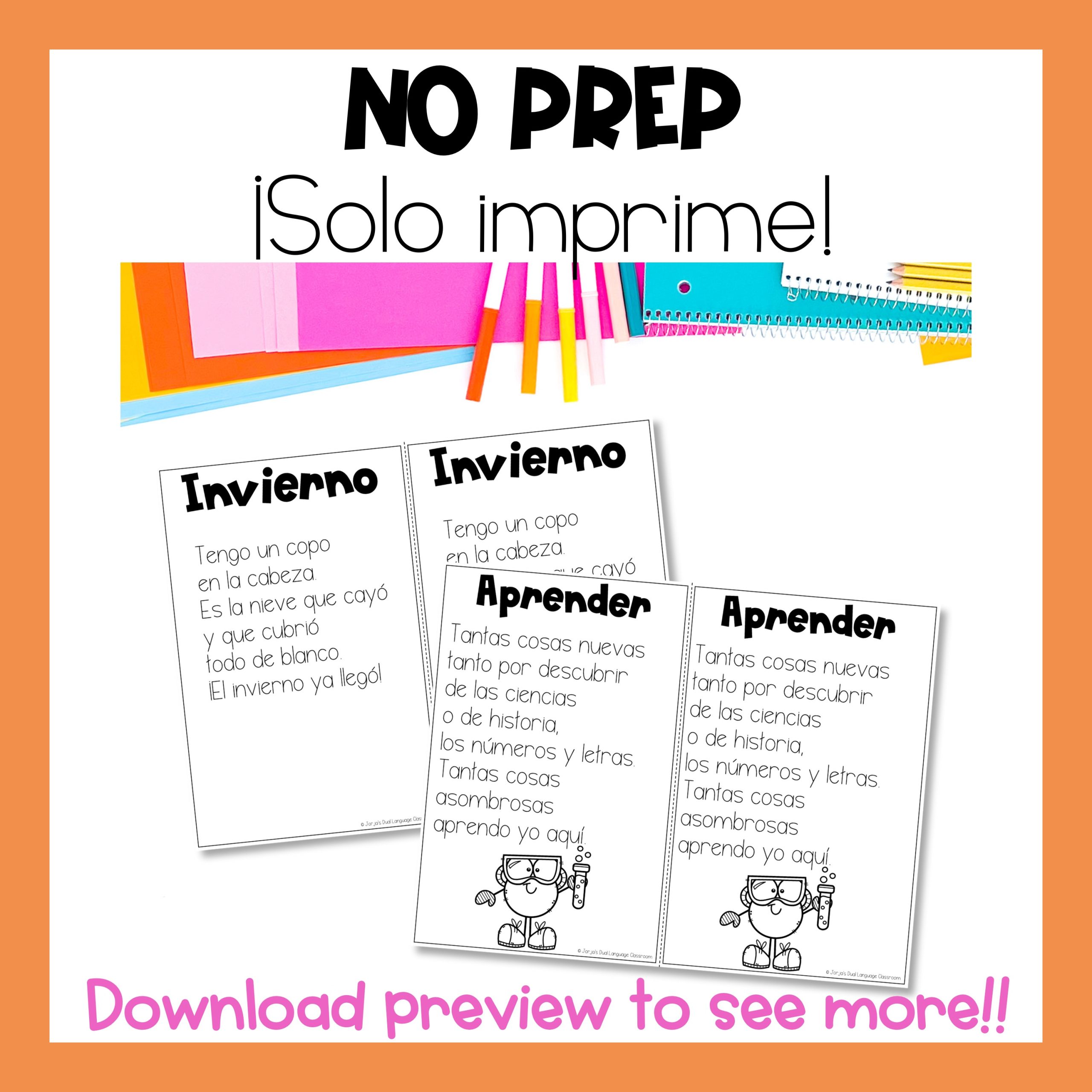 46 poemas en español para todo el año: ¡Desarrolla fluidez y comprensión! Este recurso es ideal para incorporar poemas en español a tu rutina semanal y reforzar la fluidez, comprensión y amor por la poesía en los niños. Con temas variados y diseños atractivos, estos poems in Spanish son perfectos para complementar tus actividades en el salón o en casa.
