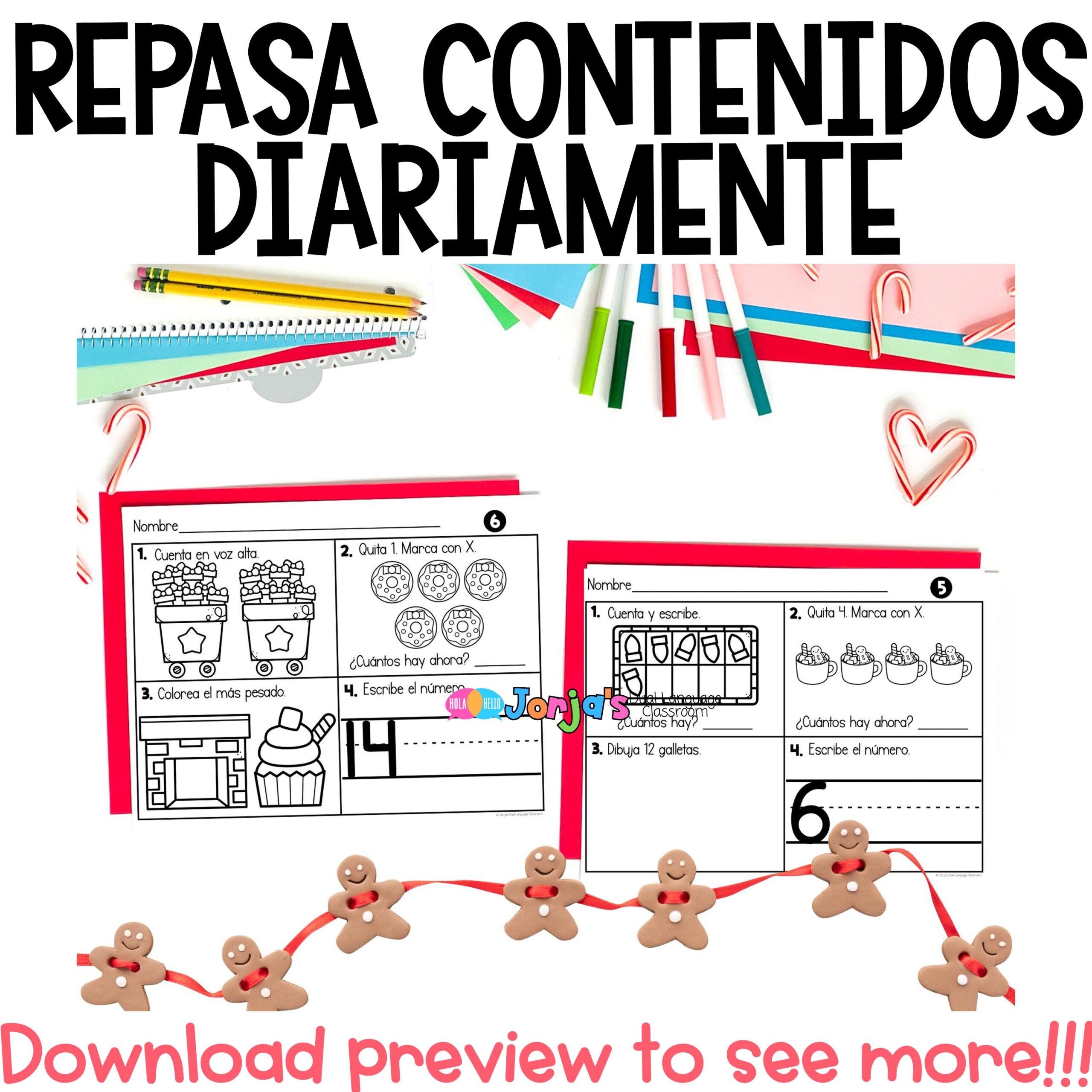 Este producto es perfecto para quienes buscan: repaso diario kinder español, morning work in Spanish, hojas de matemáticas de Navidad, daily math review Spanish, December worksheets for kindergarten in Spanish.