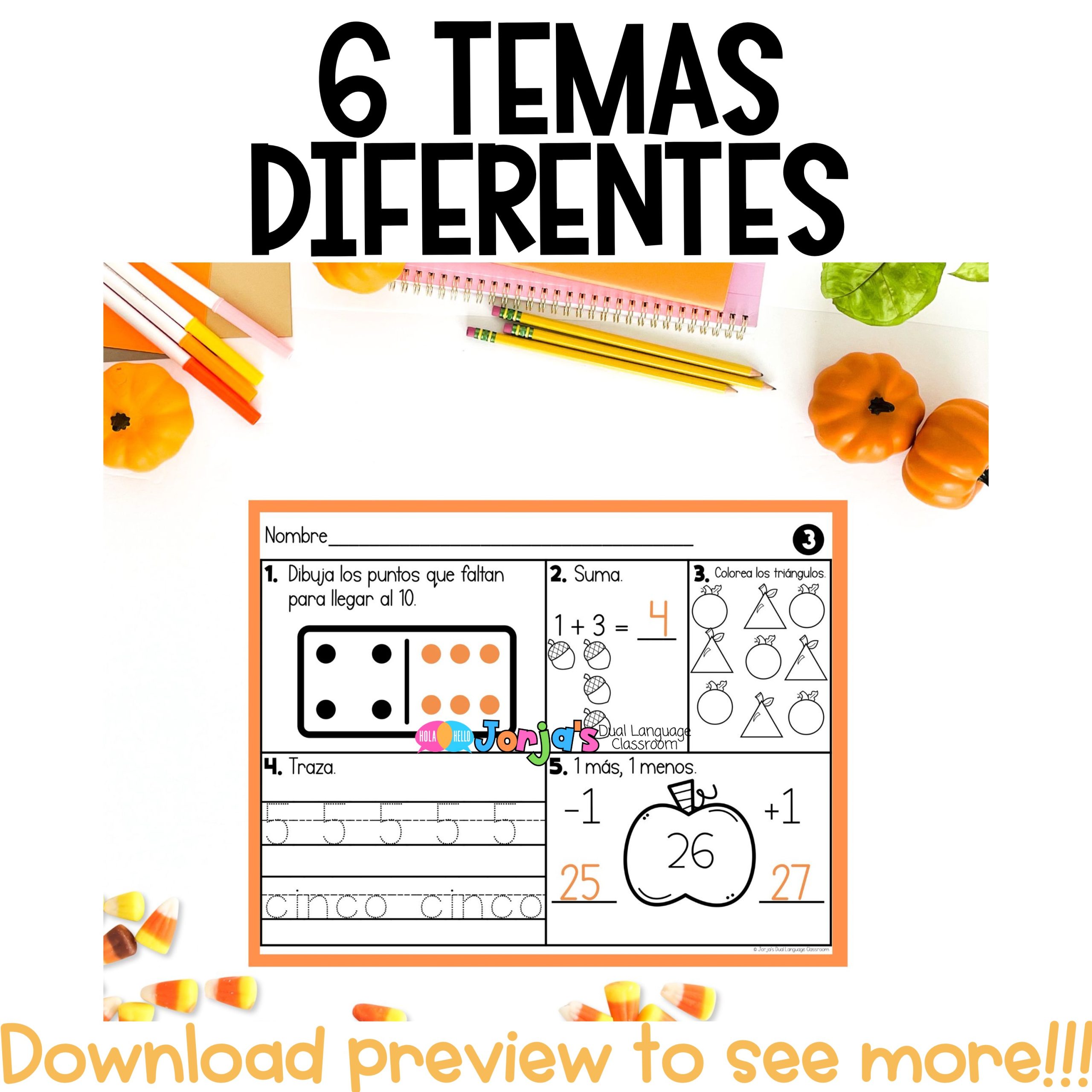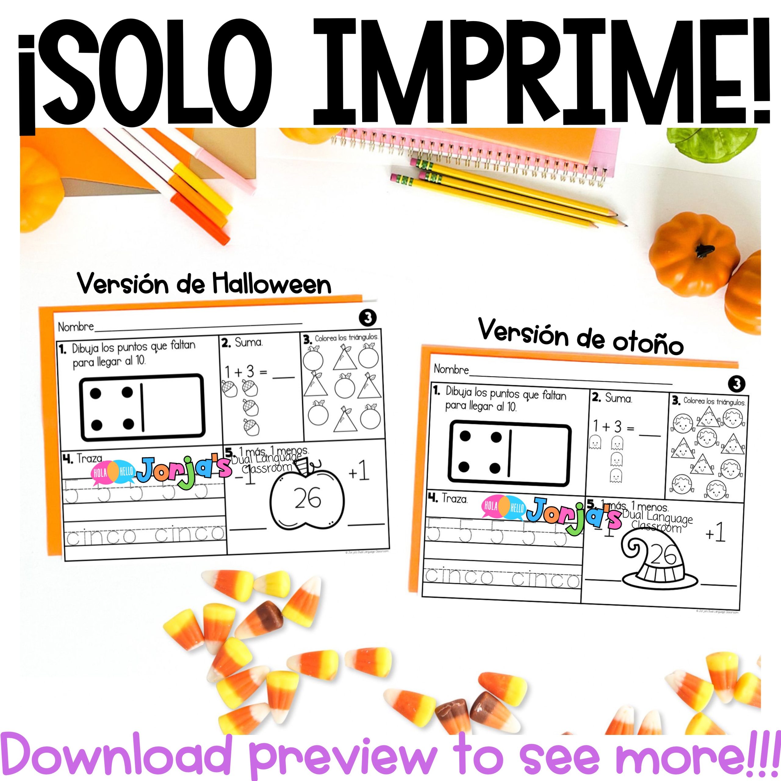 Este producto es perfecto para quienes buscan: Spanish first grade math worksheets, repaso diario en español, hojas de matemáticas para octubre, otoño math in Spanish, first grade bilingual math centers.