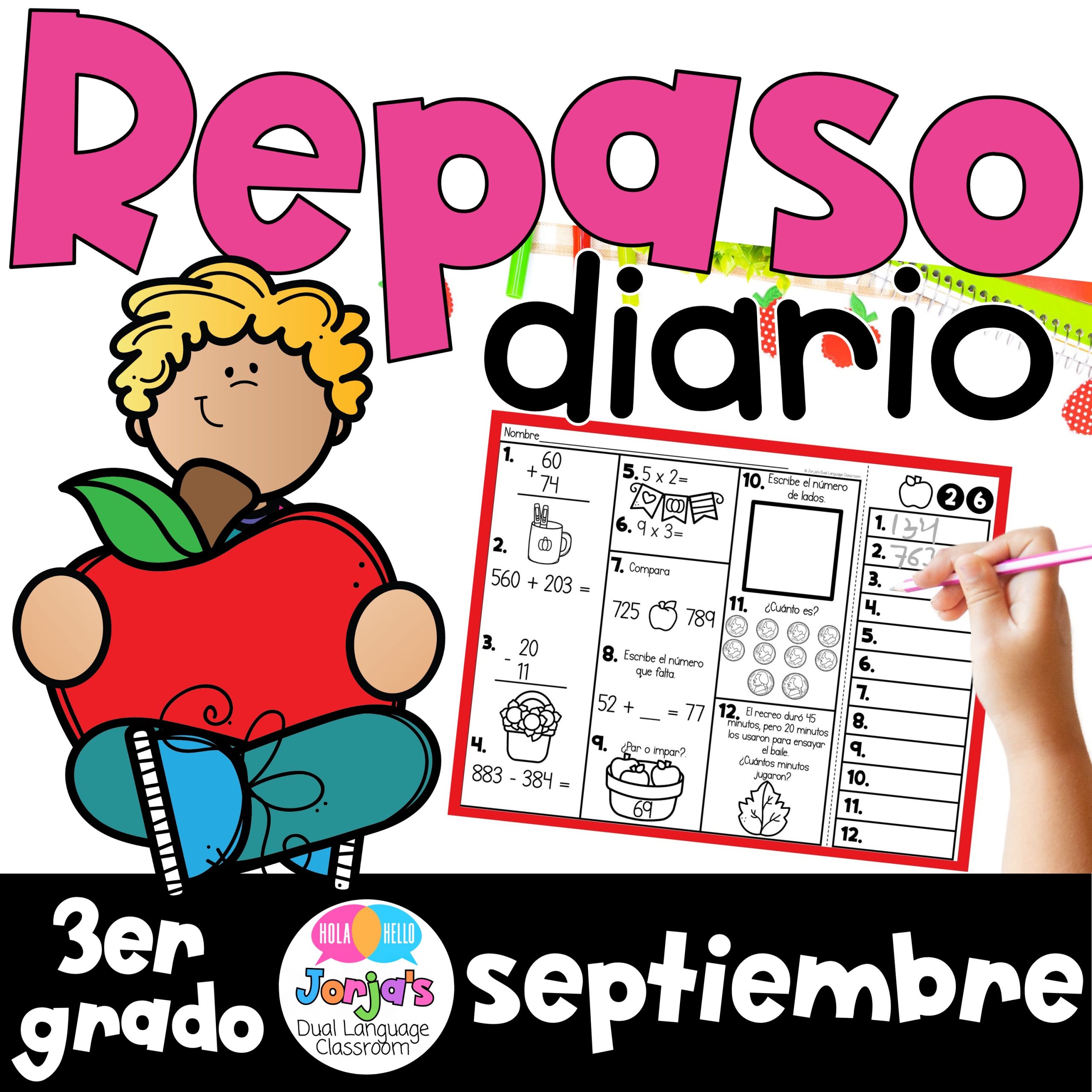 El repaso diario de septiembre está cuidadosamente diseñado para cubrir múltiples habilidades de tercer grado y asegurar que los niños refuercen lo aprendido mientras avanzan hacia nuevos contenidos. Con una mezcla de problemas directos, aplicaciones en contexto y actividades de razonamiento, este recurso fomenta la fluidez y la confianza en matemáticas en español.